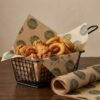 Custom food basket liners are food-safe sheets printed with your unique branding, perfect for lining trays and baskets. They enhance presentation while ensuring hygiene when serving food items.